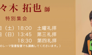 大阪のエレベートチャーチの佐々木拓也師をお迎えしての特別集会が開催されました。 どの集会も主の臨在の中、とても大切なメッセージが語られ、多く […]