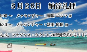2016年8月28日 納涼礼拝 ・第一礼拝09:00〜 メッセンジャー:稲福エルマ師 ・第二礼拝10:30〜 メッセンジャー:富田慎悟師 洗 […]