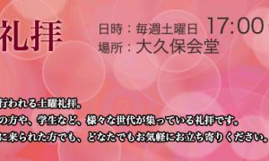 1月5日(土)お休み 1月12日(土)土曜日礼拝 説教者:吉本暁宙兄 1月19日(土)ユース礼拝 特別ゲスト:スレイマン師 1月26日(土) […]